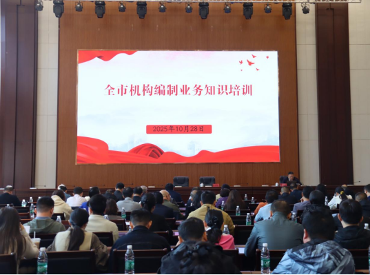 为深入学习贯彻习近平总书记关于机构编制工作的重要论述,进一步提升全市机构编制工作业务能力,10月28日,市委编办举办全市机构编制业务知识培训。省委编办法规与监督处处长邹斌受邀进行授课。市委各部门、市直各单位、各人民团体分管领导及人事部门负责同志、全市机构编制系统等200余人参加培训。