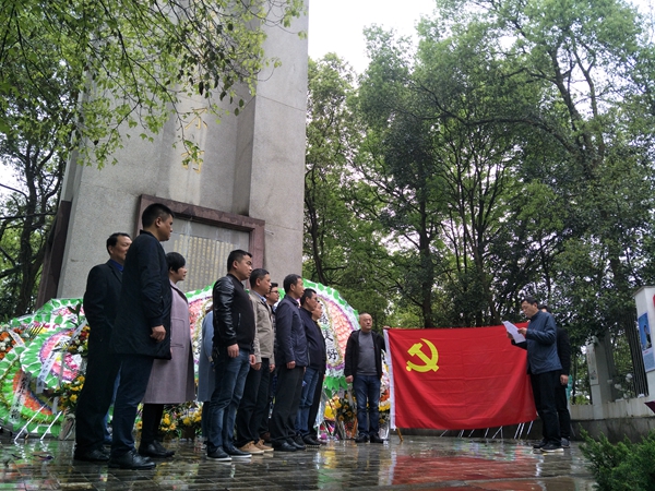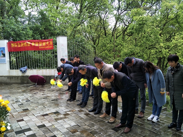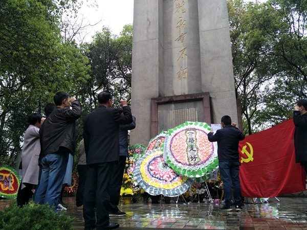 4月4日,景德镇市委编办主任伍恒光带领全办党员到莲花塘烈士墓碑前开展了一期“不忘初心 牢记使命”缅怀英烈主题党日教育活动。   祭奠革命先烈为烈士鲜花