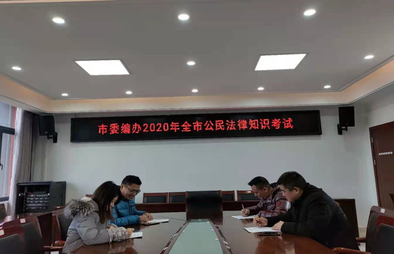 为全面贯彻落实党的十九大和十九届五中全会精神,深入贯彻落实习近平新时代中国特色社会主义思想和习近平法治思想,推进以宪法为核心的中国特色社会主义法律体系的学习宣传,推进党内法规的学习宣传,根据景德镇市普法教育工作领导小组办公室《景德镇市普法办关于举行2020年全市公民法律知识考试的通知》(景普法办字〔2020〕18号)文件要求,近日,市委编办组织开展2020年法律知识考试,通过以考促学,进一步营造我办尊法学法用法守法的浓厚法治氛围,切实提高机关领导干部法治素养和依法办事的能力水平。