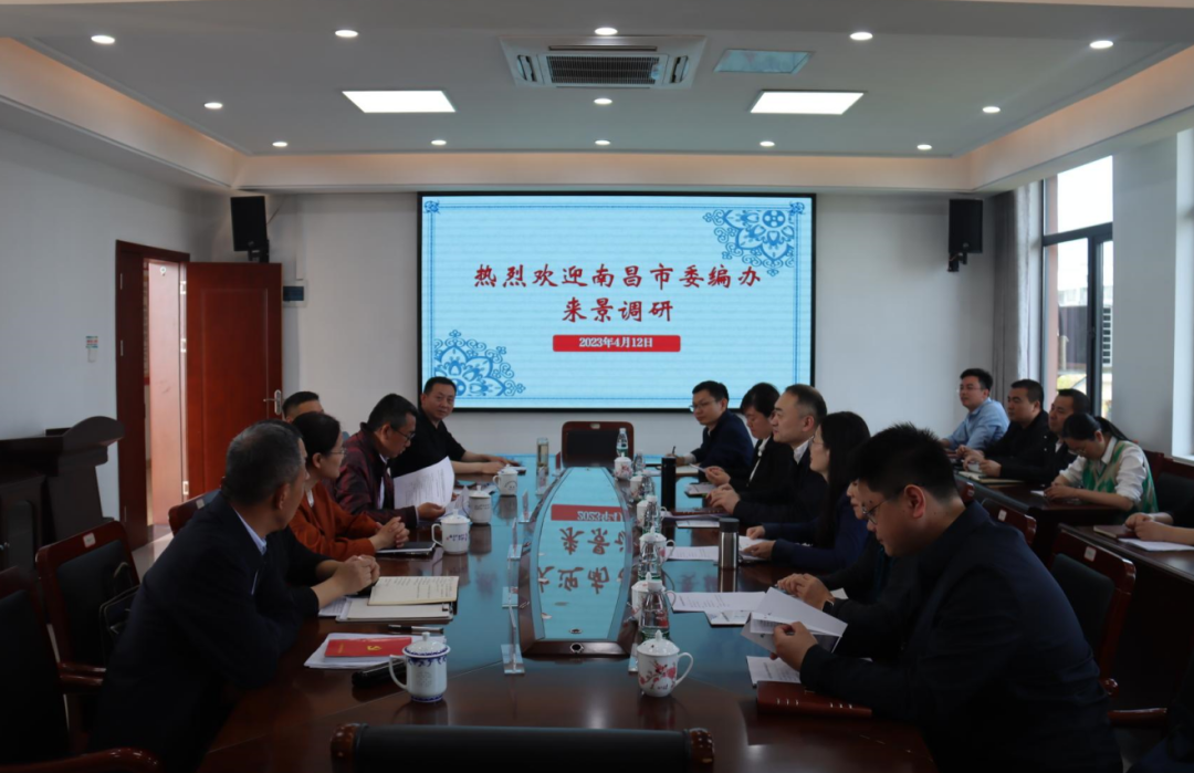 4月12日,南昌市委编办主任、市委组织部副部长陈奕蒙一行6人来景考察学习国家试验区机构设置和日常机构编制创新管理方面情况。景德镇市委编办领导班子成员及相关科室负责人陪同考察。