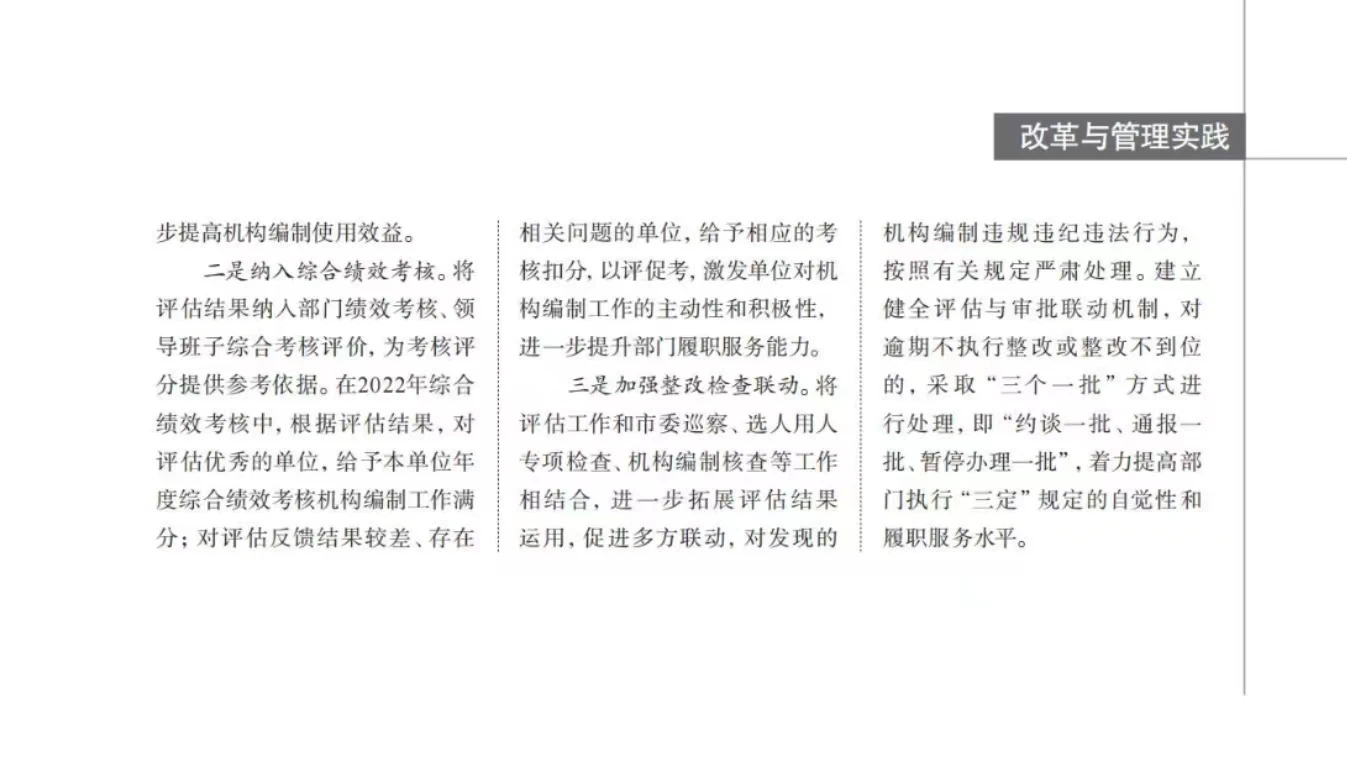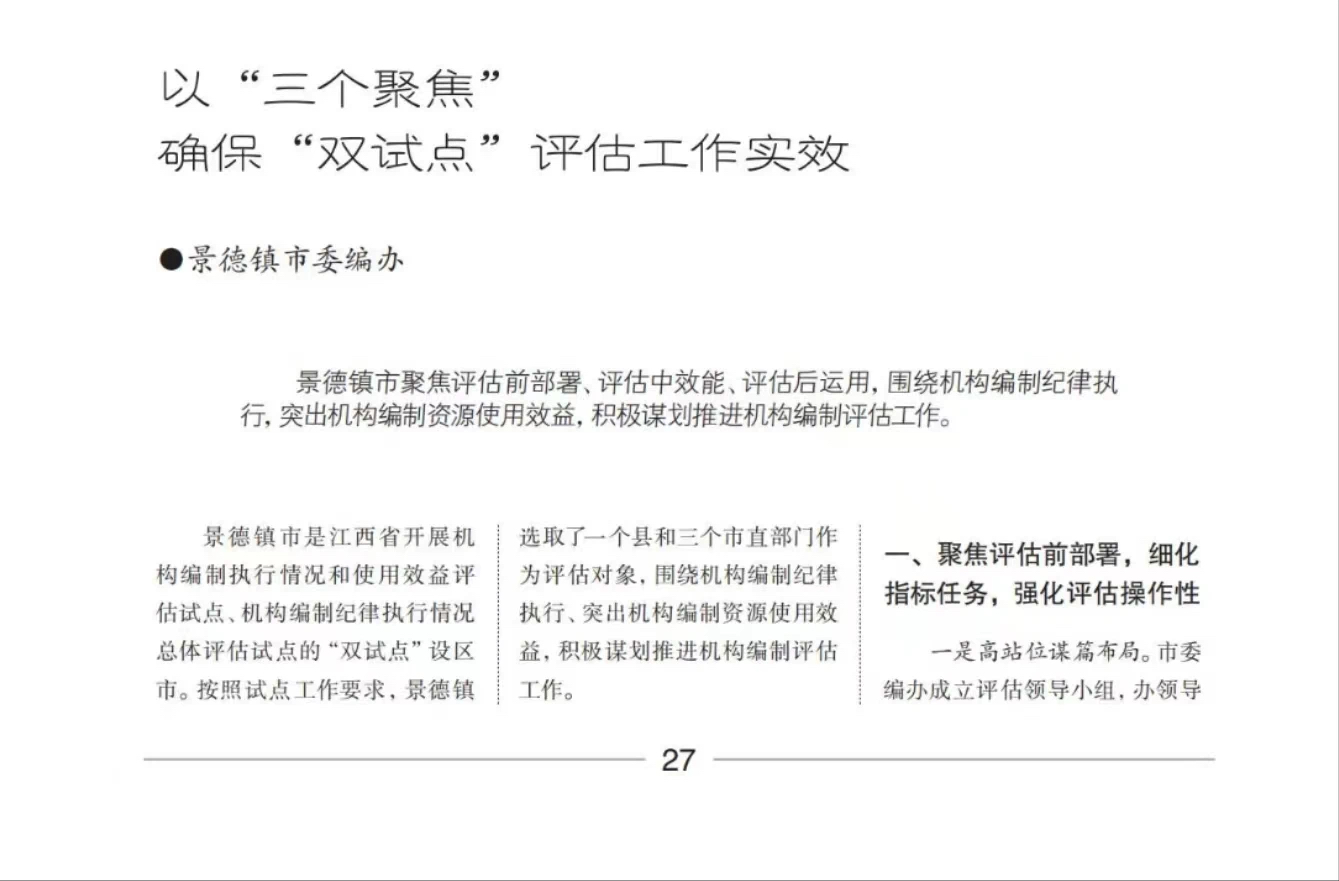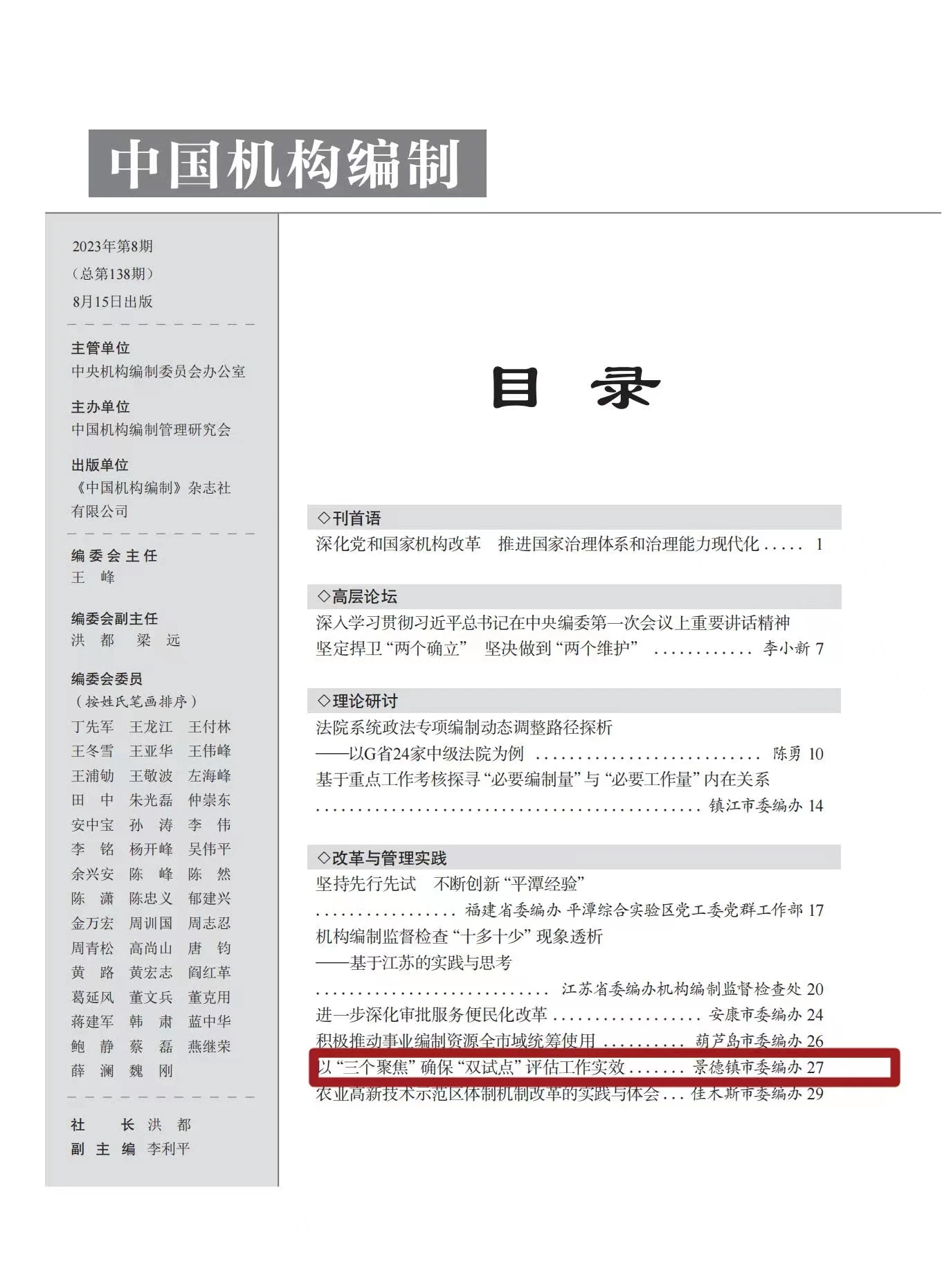 《中国机构编制》2023年第8期全文刊发我市机构编制评估工作经验文章《景德镇市委编办以“三个聚焦”确保“双试点”评估工作实效》。